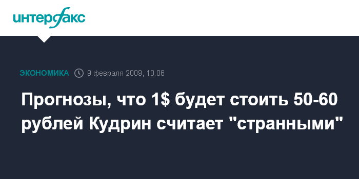 Говоря о прогнозах, что курс доллара к концу года составит 50-60 рублей за доллар А.Кудрин отметил: "Это странные, мне кажется, прогнозы".