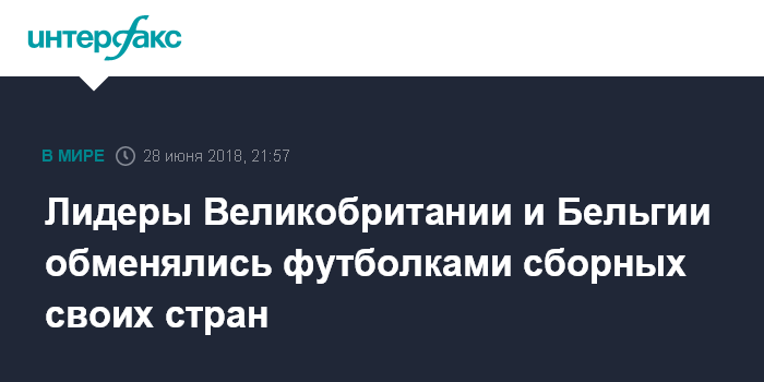Москва. 28 июня. INTERFAX.RU - Премьер-министр Бельгии Шарль Мишель вручил на саммите ЕС британскому премьеру Терезе Мэй футболку бельгийской футбольной сборной в преддверии матча Англия-Бельгия на Чемпионате мира по футболу, сообщает в четверг Би-би-си.
