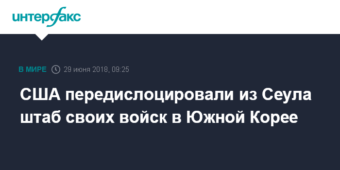 Агентство напоминает, что штаб-квартира военного командования США в Южной Корее находилась в сеульском районе Ренсан на протяжении 70 лет, с тех пор, как американские войска впервые были дислоцированы в стране в конце Корейской войны 1950-1953 гг.