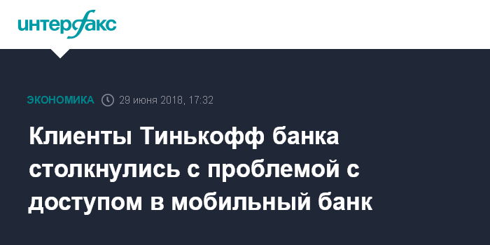 Москва. 29 июня. INTERFAX.RU - Некоторые клиенты Тинькофф банка столкнулись с неполадками в работе одной из систем кредитной организации, сообщили "Интерфаксу" в банке.