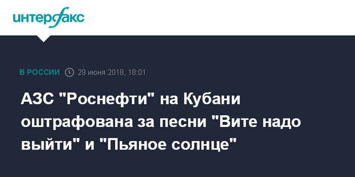 АЗС "Роснефти" на Кубани оштрафована за песни "Вите надо выйти" и "Пьяное солнце"