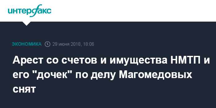 Москва. 29 июня. INTERFAX.RU - Арест, наложенный на счета и имущество "Новороссийского морского торгового порта" и его "дочек" в рамках дела братьев Магомедовых, снят.