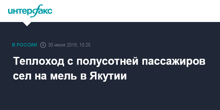 Москва. 30 июня. INTERFAX.RU - Теплоход, следовавший по реке Лена маршруту Сангар - Якутск, в субботу сел на мель в сотне километров от конечного пункта.