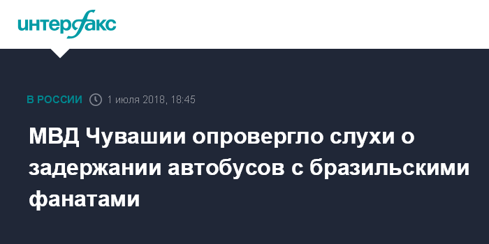 "1 июля в ряде СМИ появилась информация о задержании сотрудниками полиции на территории Чувашской республики автобусов с бразильскими болельщиками. МВД по Чувашской республике официально сообщает, что данная информация не соответствует действительности", - сообщается на сайте региональной полиции.