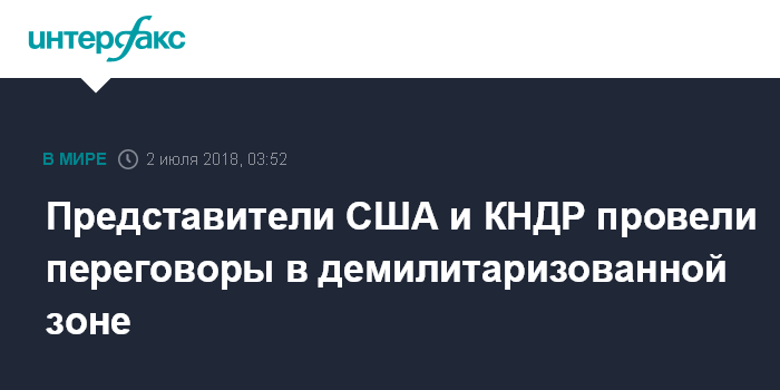 Москва. 2 июля. INTERFAX.RU - Делегации США и КНДР провели переговоры в демилитаризованной зоне в южнокорейской деревне Пханмунджом, где ранее прошла встреча лидеров двух Корей, сообщает в воскресенье CNN.