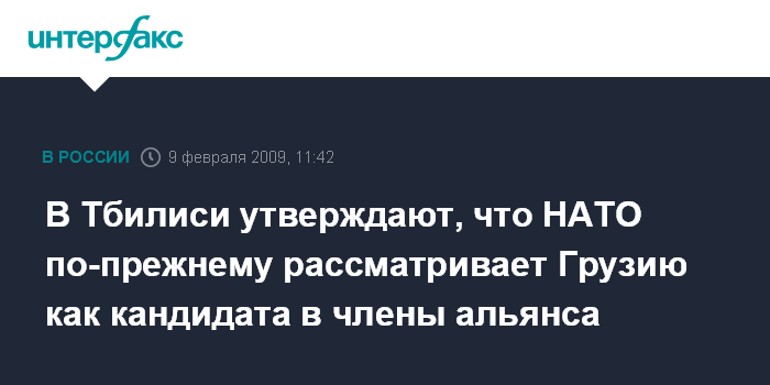 Москва. 9 февраля. INTERFAX.RU - Глава МИД Грузии Григол Вашадзе заявил, что страна рассматривается как кандидат в члены НАТО.