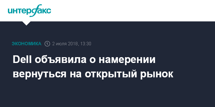 Москва. 2 июля. INTERFAX.RU - Американский производитель компьютерной техники Dell, крупнейшая частная технологическая компания в мире, в понедельник объявил о намерении вернуться на открытый рынок.