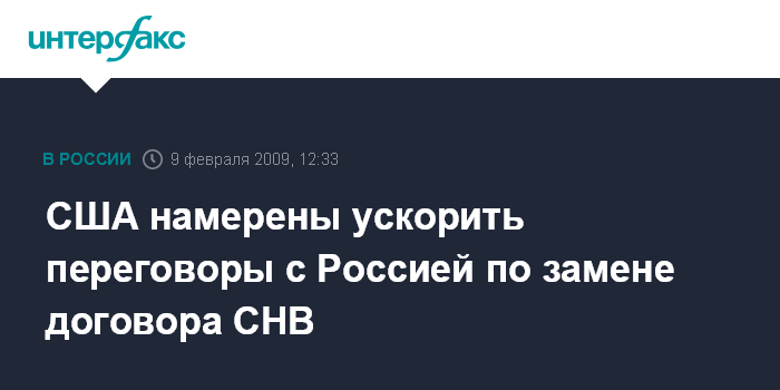 "По определению по истечении срока действия договора СНВ в 2009 году, если мы хотим иметь новый договор он должен быть быстро выработан, чтобы иметь нечто, что заменит СНВ, когда срок его действия истечет", - сказал, Г.Дугуд, выступая на ежедневном брифинге в госдепе. По его словам, США готовы к этому.