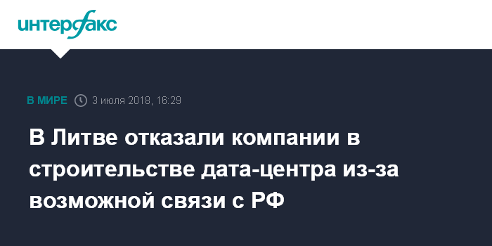 Москва. 3 июля. INTERFAX.RU - Главный административный суд Литвы согласился с выводами литовской разведки и признал угрозу для национальной безопасности в строительстве дата-центра близ Вильнюса из-за предполагаемых связей его владельцев с российскими спецслужбами, сообщает во вторник агентство BNS.