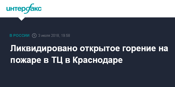 Москва. 3 июля. INTERFAX.RU - Пожарные справились с возгоранием в торговом центре в Краснодаре, сообщили "Интерфаксу" в региональном главке МЧС.