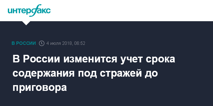 Москва. 4 июля. INTERFAX.RU - Президент России Владимир Путин подписал закон о внесении изменений в статью 72 Уголовного кодекса РФ, касающихся порядка зачета времени содержания лица под стражей до вынесения приговора и срока отбывания наказания в виде лишения свободы. Документ, принятый Госдумой 21 июня и одобренный Советом Федерации 27 июня, опубликован на официальном портале правовой информации.
