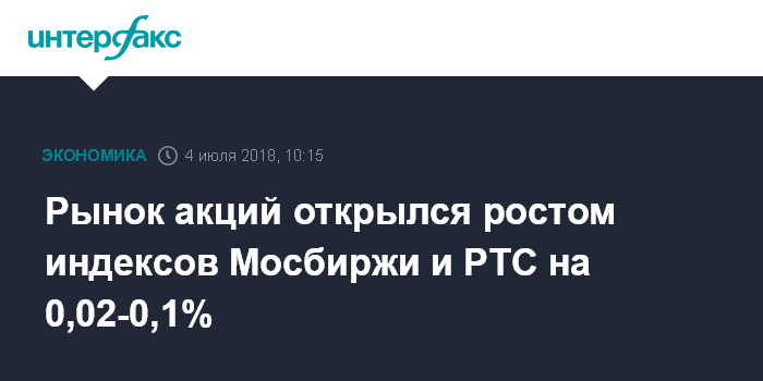 Рынок акций открылся ростом индексов Мосбиржи и РТС на 0,02-0,1%