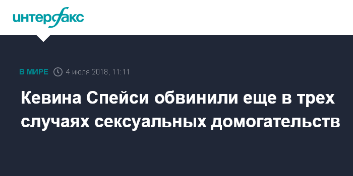 По данным телеканала, в полицию Лондона в период с февраля по апрель 2018 года поступили три заявления с обвинениями Спейси в посягательстве сексуального характера. Два из упомянутых инцидентов, согласно заявлениям, произошли в Лондоне в 1996 году и 2008 году, еще один - в Глостере в 2013 году.