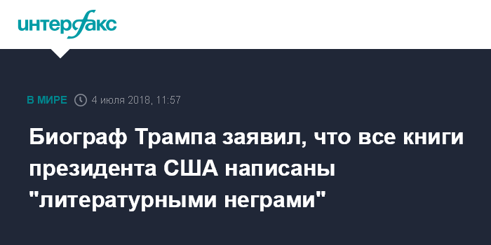 Москва. 4 июля. INTERFAX.RU - Журналист и автор биографической книги о Дональде Трампе Тимоти О'Брайан заявил, что все книги авторства президента США на самом деле написаны за него другими людьми.