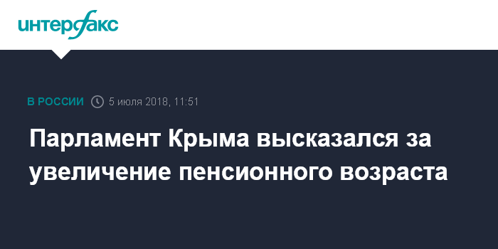 Москва. 5 июля. INTERFAX.RU - Государственный совет Крыма поддержал проект закона о повышении пенсионного возраста в России.