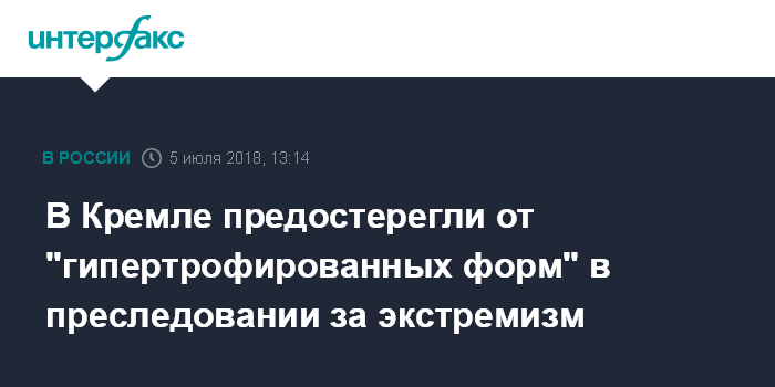 Москва. 5 июля. INTERFAX.RU - В Кремле согласны с тем, что преследование за распространение информации, которая может быть расценена как экстремистская, не должно приобретать гипертрофированные формы.