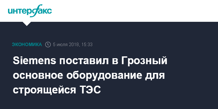 Siemens поставил в Грозный основное оборудование для строящейся ТЭС