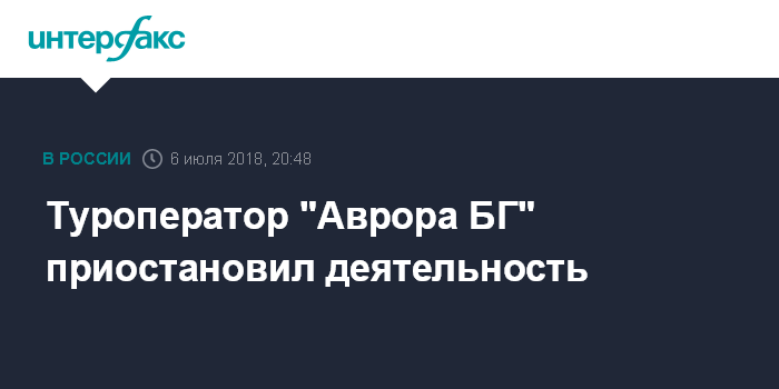 "ООО "Аврора-БГ" с сожалением сообщает о невозможности дальнейшего осуществления туроператорской деятельности. Начиная с 06.07.2018 года наша компания прекращает продажу туристических услуг", - сообщает компания на своем сайте в пятницу.