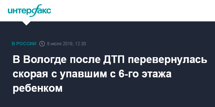 В Вологде после ДТП перевернулась скорая с упавшим с 6-го этажа ребенком