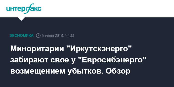 Миноритарии "Иркутскэнерго" забирают свое у "Евросибэнерго" возмещением убытков. Обзор