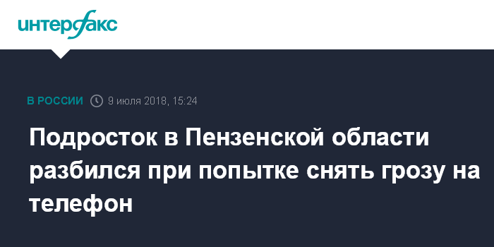 Москва. 9 июля. INTERFAX.RU - Несовершеннолетний житель ЗАТО Заречный Пензенской области погиб, пытаясь запечатлеть на свой мобильный телефон разгул стихии.