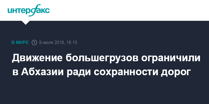 Москва. 9 июля. INTERFAX.RU - Премьер-министр Абхазии Геннадий Гагулия подписал в понедельник распоряжение о введении ограничений на движение тяжеловесных и крупногабаритных транспортных средств на территории Абхазии.