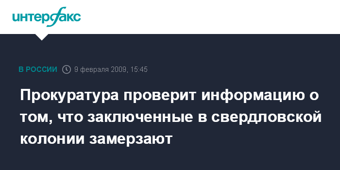 Как сообщает в понедельник пресс-служба прокуратуры Свердловской области, информация о том, что часть заключенных содержится в очень холодных камерах, появилась в ряде региональных СМИ, поэтому прокурор области дал задание проверить данные. "В сообщениях, в частности, говорилось, что заключенные замерзают в камерах штрафного изолятора и помещениях камерного типа, температура в которых понизилась в связи с наступившими на Урале морозами", - говорится в сообщении.