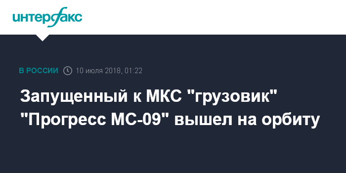 Москва. 10 июля. INTERFAX.RU - Самый быстрый в истории космический "грузовик" вышел на орбиту и взял курс на Международную космическую станцию.