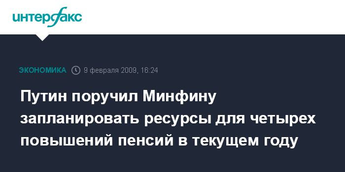 Москва. 9 февраля. INTERFAX.RU - Премьер-министр РФ Владимир Путин дал указание Минфину запланировать ресурсы на необходимую индексацию пенсий в этом году.