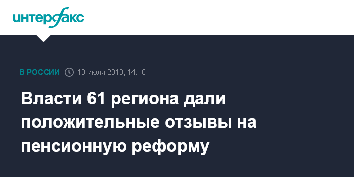 Власти 61 региона дали положительные отзывы на пенсионную реформу