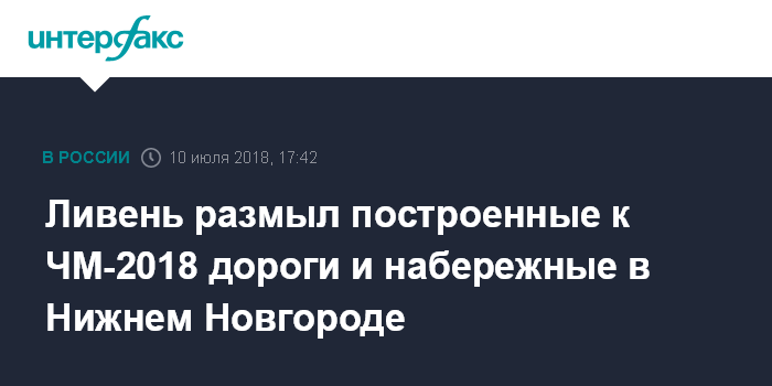 Глава города отметил, что вода также смыла брусчатку в Александровском саду, который находится рядом с Нижегородским кремлем. Кроме того, ливневые канализации не сработали на Нижневолжской набережной, которую городские власти открыли после десятилетней реконструкции - также в преддверии чемпионата мира по футболу.
