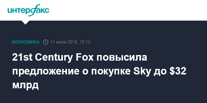 21st Century Fox повысила предложение о покупке Sky до $32 млрд