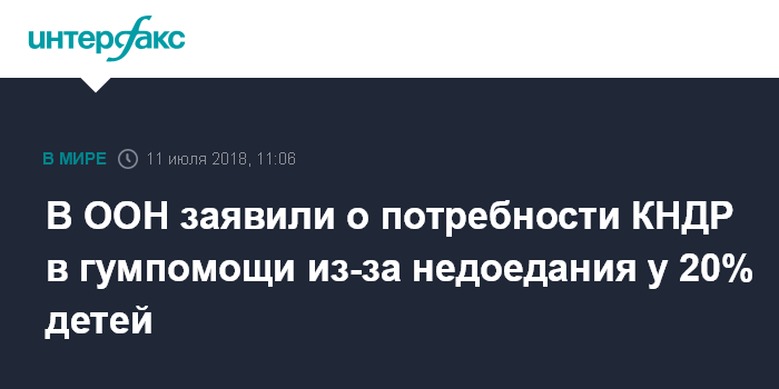 В ООН заявили о потребности КНДР в гумпомощи из-за недоедания у 20% детей
