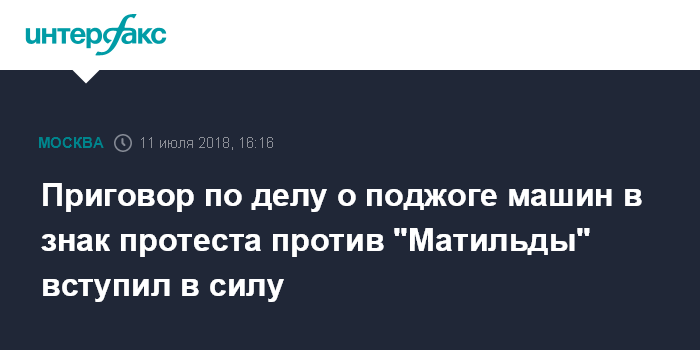 Приговор по делу о поджоге машин в знак протеста против "Матильды" вступил в силу