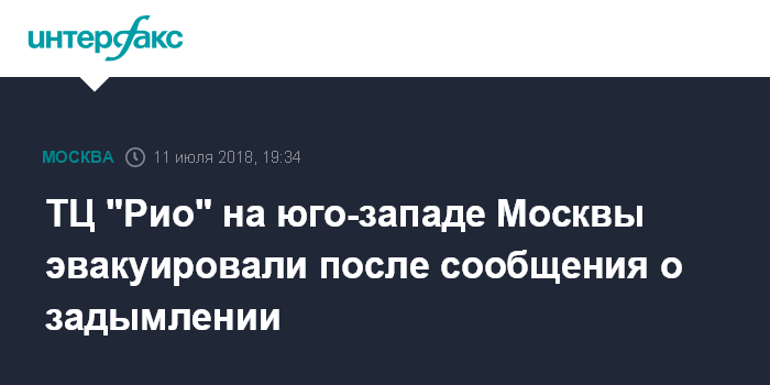 ТЦ "Рио" на юго-западе Москвы эвакуировали после сообщения о задымлении