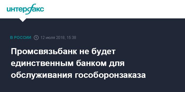 Москва. 12 июля. INTERFAX.RU - Промсвязьбанк не будет единственным банком для обслуживания гособоронзаказа, сообщил замминистра финансов РФ Алексей Моисеев журналистам в четверг.