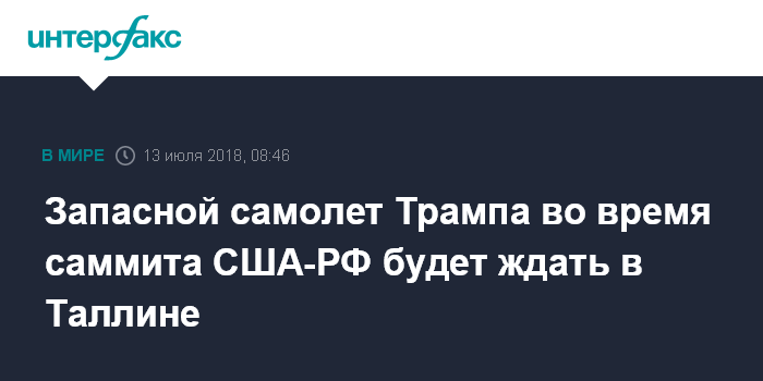 Москва. 13 июля. INTERFAX.RU - Запасной борт президента США Дональда Трампа, а также сопровождающий его транспортный самолет будут ждать завершения саммита США-Россия в эстонском Таллине.