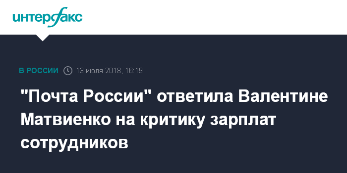 Ранее на заседании Совфеда Матвиенко указала, что сенаторы разбирались с положением почтальонов в регионах и обнаружили, что почтальоны в некоторых регионах по-прежнему получают зарплату ниже МРОТ.