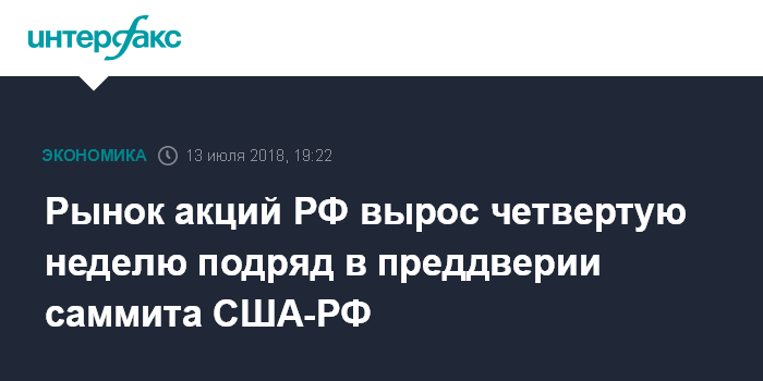 Рынок акций РФ вырос четвертую неделю подряд в преддверии саммита США-РФ
