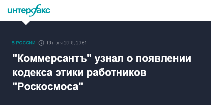 "Коммерсантъ" узнал о появлении кодекса этики работников "Роскосмоса"
