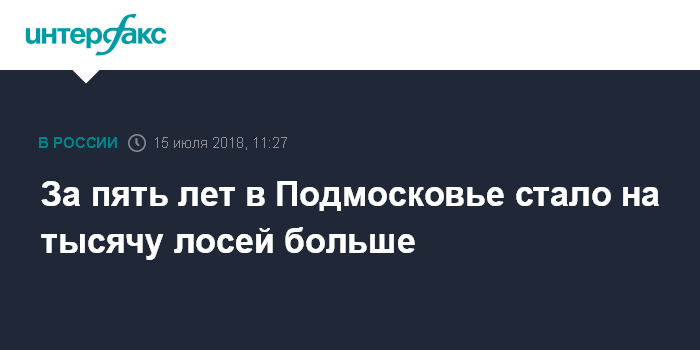 Москва. 15 июля. INTERFAX.RU - Численность лосей в Московской области за пять лет возросла на тысячу особей - с 9,31 тыс. в 2013 году, до 10,3 тыс. в 2018 году, сообщила пресс-служба Минэкологии Подмосковья.