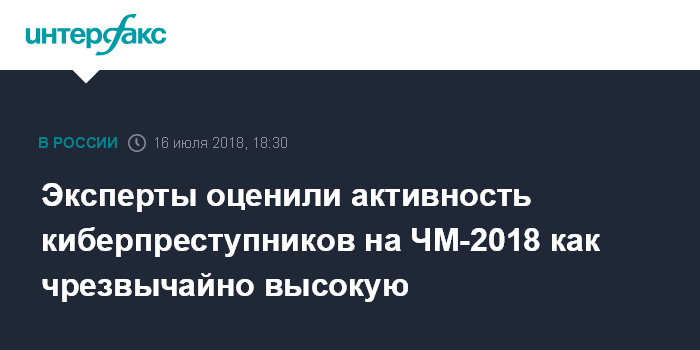 Москва. 16 июля. INTERFAX.RU - В компании Group-IB, работающей в области предотвращения и расследования киберпреступлений, назвали "чрезвычайно высоким" уровень активности киберпреступников во время Чемпионата мира по футболу 2018.