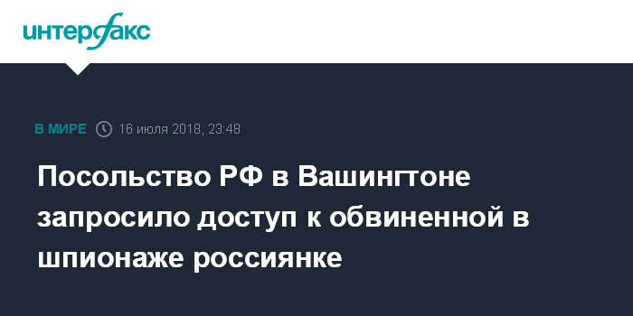 Посольство РФ в Вашингтоне запросило доступ к обвиненной в шпионаже россиянке