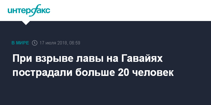 Москва. 17 июля. INTERFAX.RU - Из-за взрыва лавы на Гавайских островах пострадали 23 человека, сообщает в понедельник информагентство Associated Press.