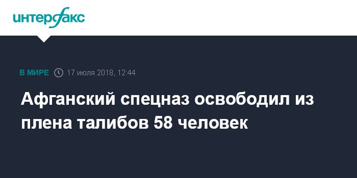Москва. 17 июля. INTERFAX.RU - На юге Афганистана армейский спецназ освободил из плена боевиков радикального движения "Талибан" (запрещено в РФ) 58 заложников, сообщил во вторник пресс-центр Министерства обороны страны.
