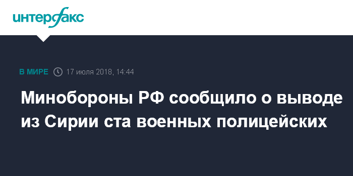 Москва. 17 июля. INTERFAX.RU - Сотня военных полицейских вернулась домой из Сирии, сообщили в Минобороны РФ.
