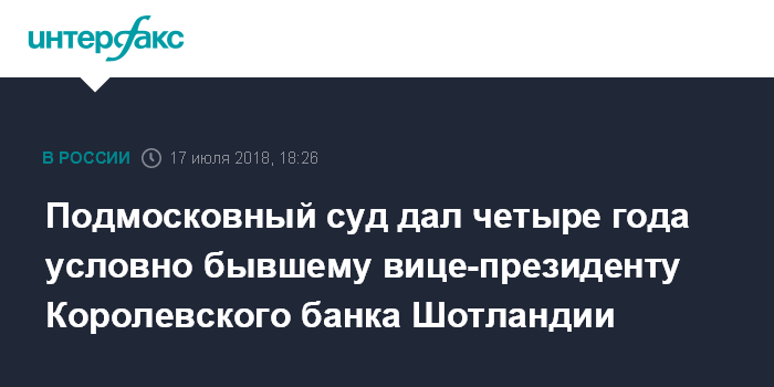 Подмосковный суд дал четыре года условно бывшему вице-президенту Королевского банка Шотландии
