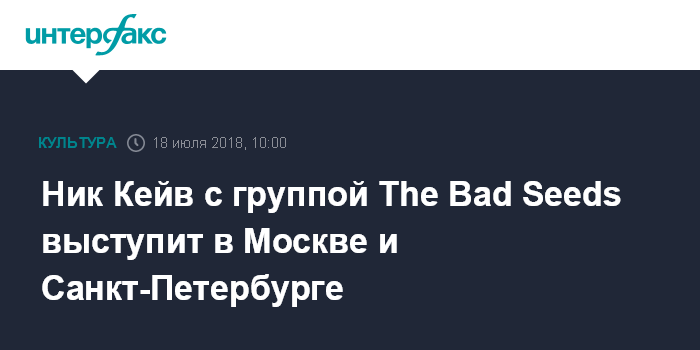 "25 июля 2018 года в клубе A2 Green Concert в Санкт-Петербурге и 27 июля в клубе Adrenaline Stadium в Москве дадут концерты легендарные Nick Cave & The Bad Seeds. Группа обещает не похожее ни на что умопомрачительное шоу, а также представит свой последний альбом "Skeleton Tree", наполненный свойственной Кейву драматической мрачностью", - отмечают организаторы шоу.