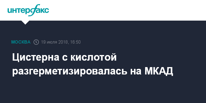 Москва. 19 июля. INTERFAX.RU - В районе МКАД произошла разгерметизация емкости с кислотой. Об этом сообщает в четверг пресс-служба ГУ МЧС России по Москве.