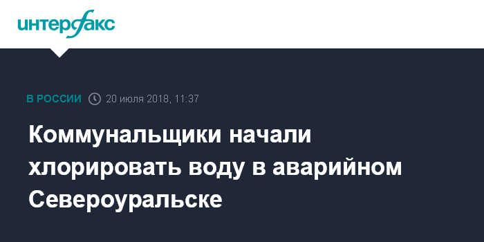 Москва. 20 июля. INTERFAX.RU - Коммунальная служба завершает промывку водопроводной сети и приступает к хлорированию воды в Североуральске (Свердловская область), где 16 июля произошел обвал русла реки, сообщает департамент информационной политики губернатора региона.